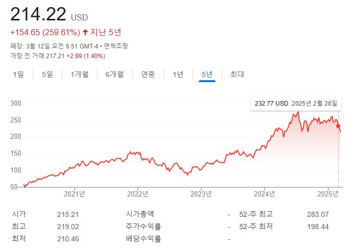 차트만 보면 지금은 AI 관련주 매도 시기라고 볼 수 있어요. 지난주 200일선($235~$240)이 무너졌을 때 팔았다면 손실을 줄일 수 있었을 텐데 아쉽네요.