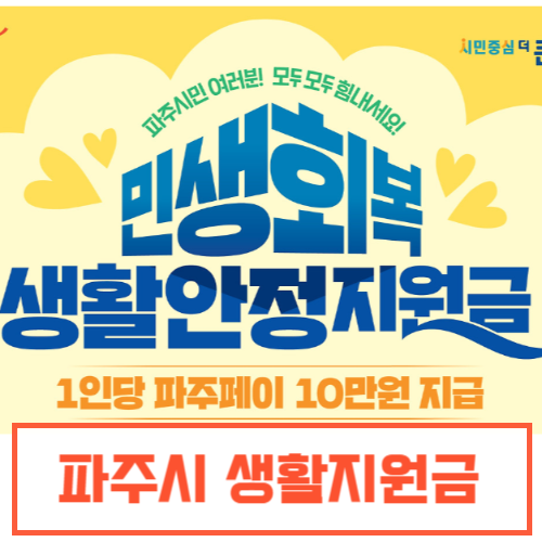 파주 시민을 대상으로 생활 안정과 민생 회복을 위해 1인당 10만 원을 지원금을 지급한다고 합니다.
